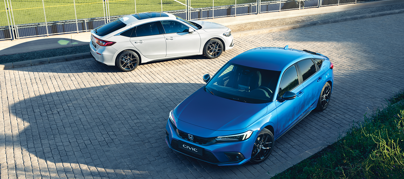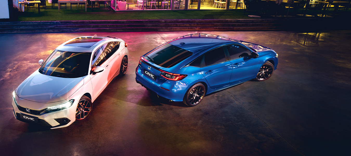 La toute nouvelleCivic e:HEV est une berline compacte hybride auto-rechargeable dynamique qui associe le design et la technologie légendaires de la Civic à une puissance électrifiée exaltante.