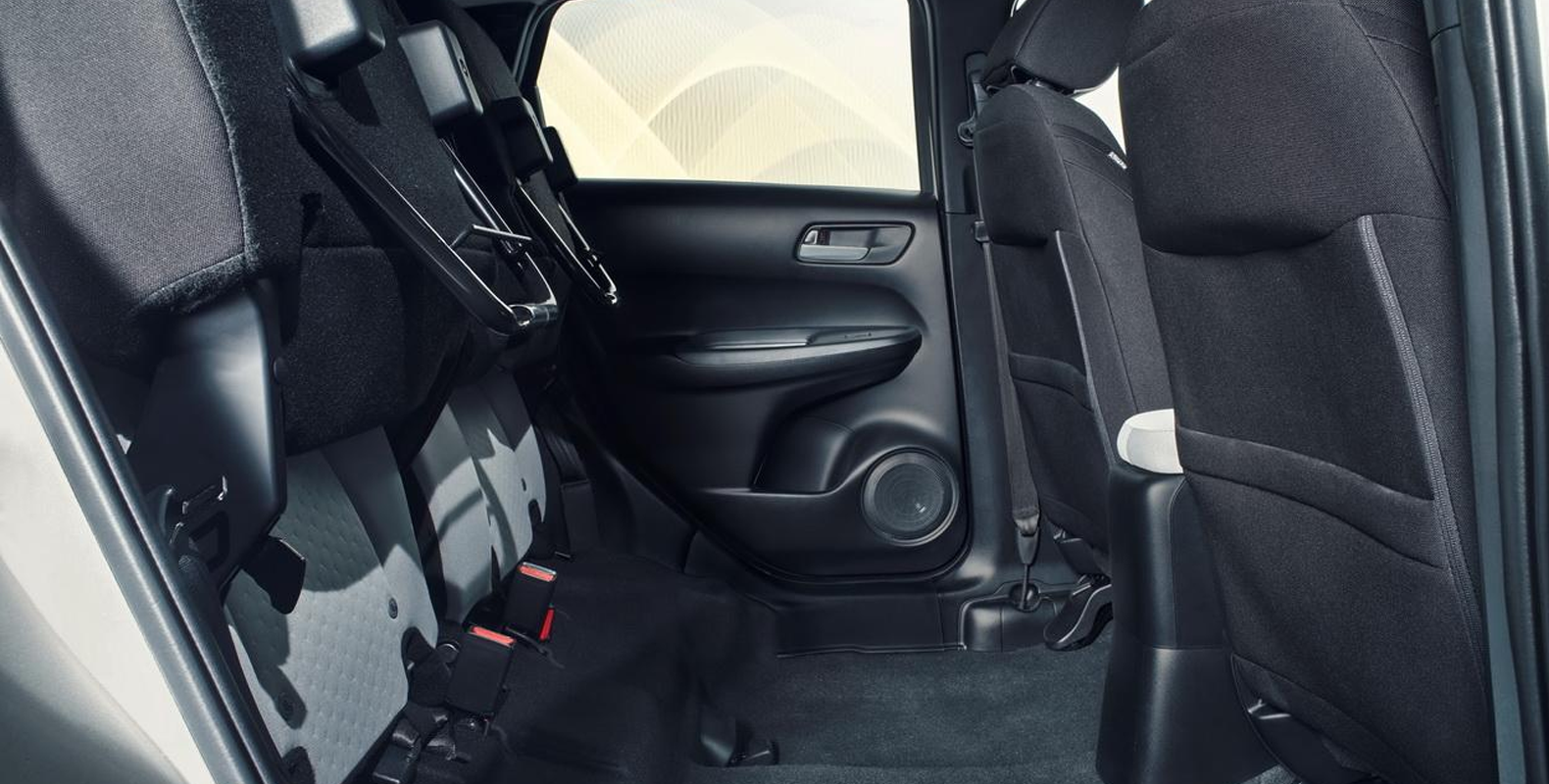 De par ses dimensions généreuses, la Honda Jazz présente un coffre d'une capacité débutant à 304 litres (avec sièges arrière relevés) pour monter jusqu'à 1 205 litres (avec sièges arrière baissés, jusqu'au toit). Vous serez surpris de tout ce que vous pouvez faire entrer dans une Honda Jazz.