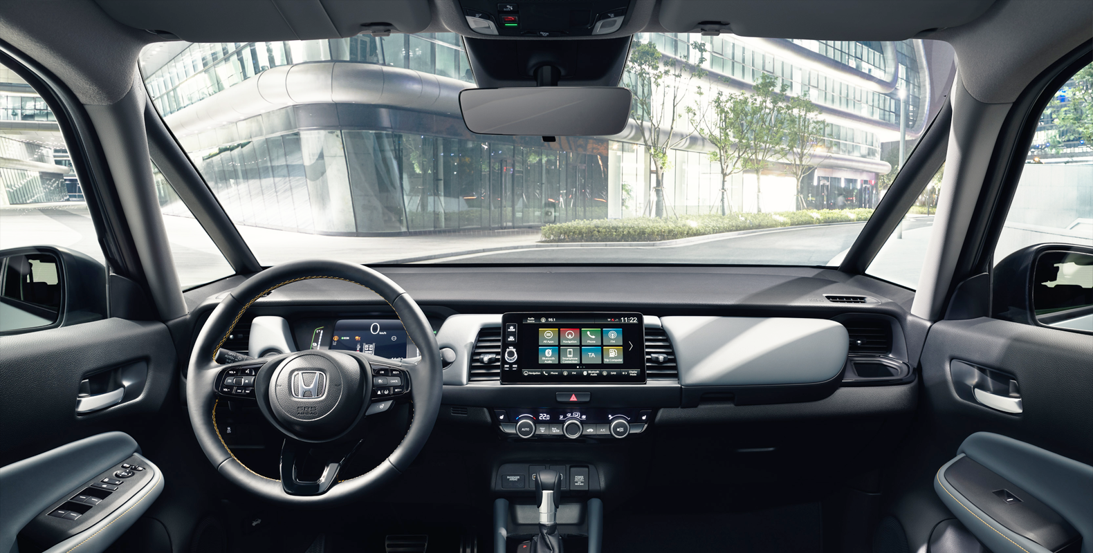 Le pare-brise panoramique de la Honda Jazz offre une visibilité remarquable. Plus fins, mais extrêmement robustes, les montants améliorent davantage la vision périphérique, pour une expérience de conduite immensément immersive.