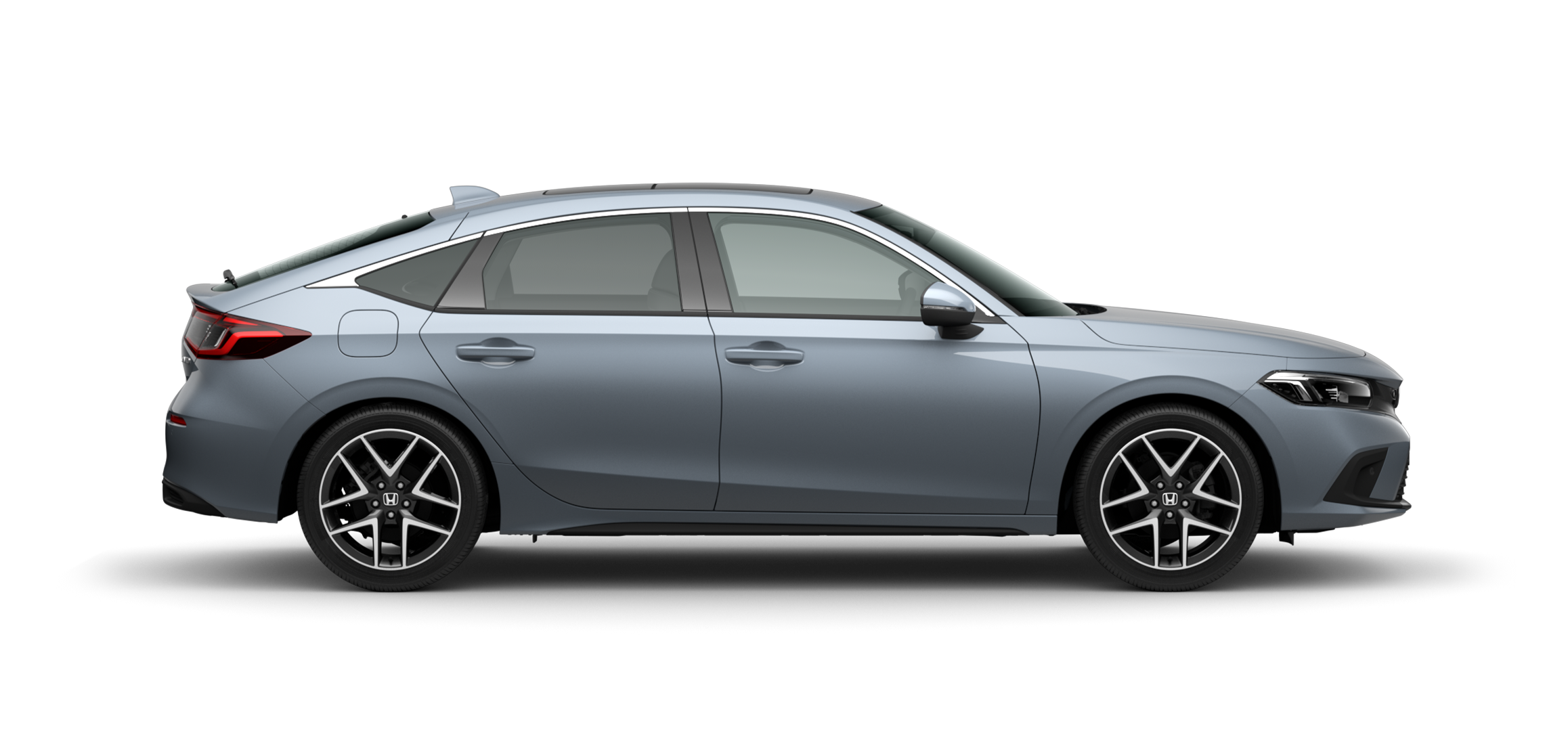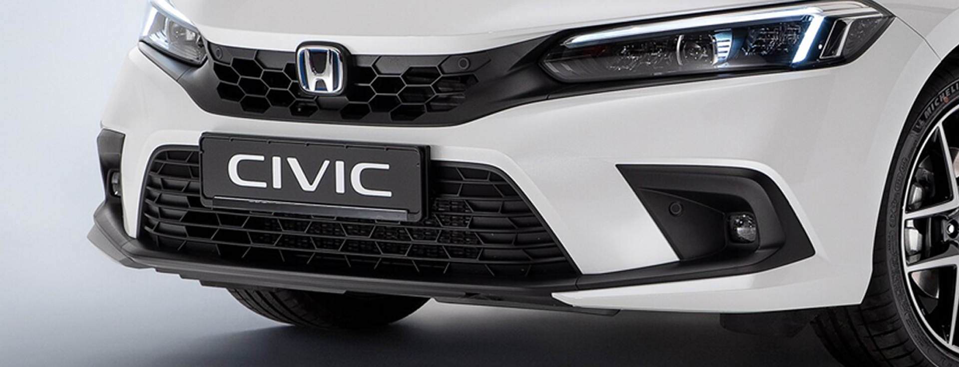 Le capot plat, les lignes épurées et les surfaces élégantes confèrent a la Honda Civic e:HEV un caractère frais et moderne.