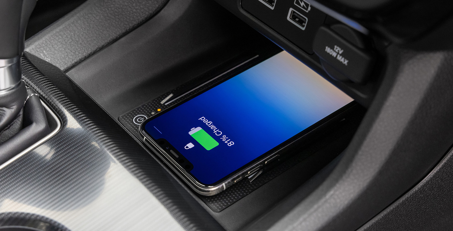 Évitez les tracas et les risques associés aux câbles qui traînent en rechargeant votre téléphone intelligent compatible à l'aide du tapis de recharge sans fil disponible.